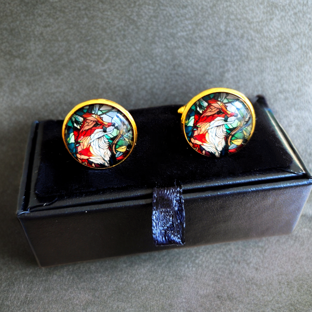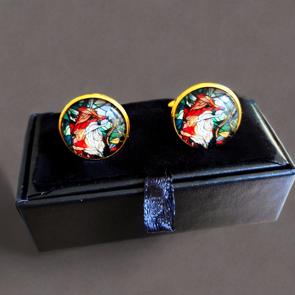 Bright and colourful stained glass effect fox head image design Cufflinks in gold