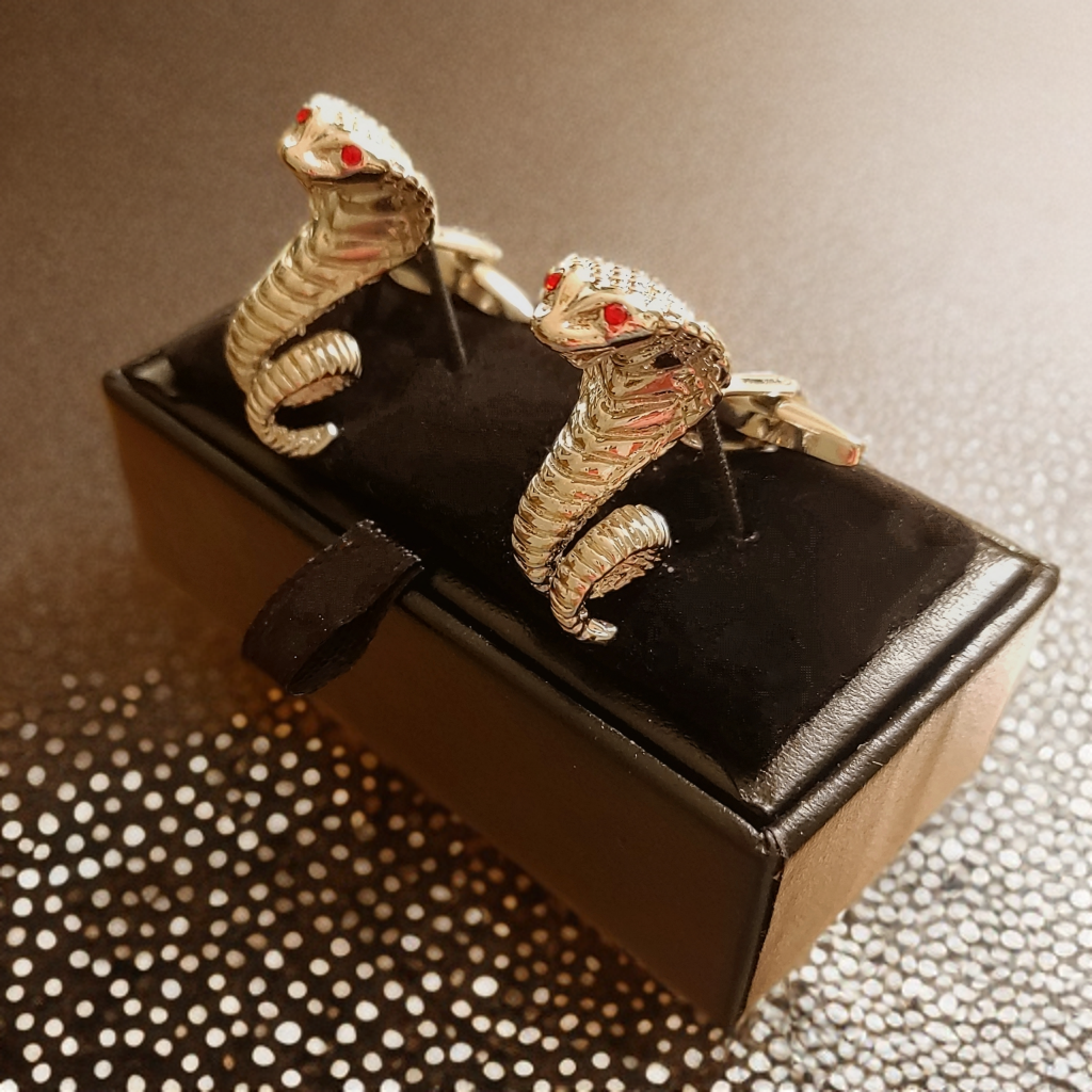 Stunning pair of Cobra snake Cufflinks in silver with ruby red eyes......look striking in these Gothic, Steam Punk, Rock n Roll style conversation pieces in your shirt cuffs!